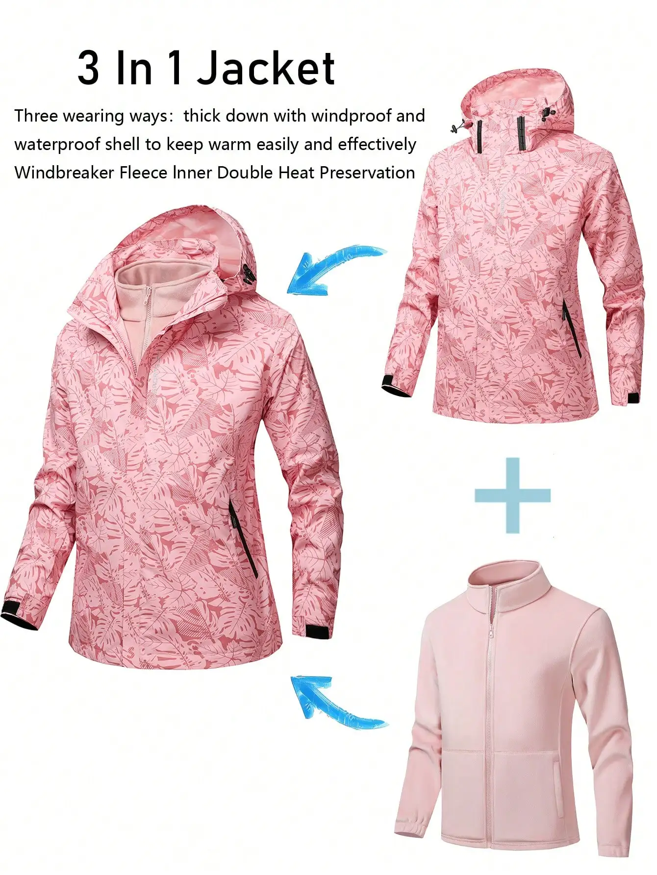 Veste 3-en-1 pour femmes, coupe-vent chaud pour l'automne et l'hive...