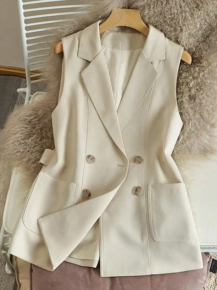 Gilet de costume Beige à Double boutonnage pour femmes, vêtements avec poche arri&egrav...