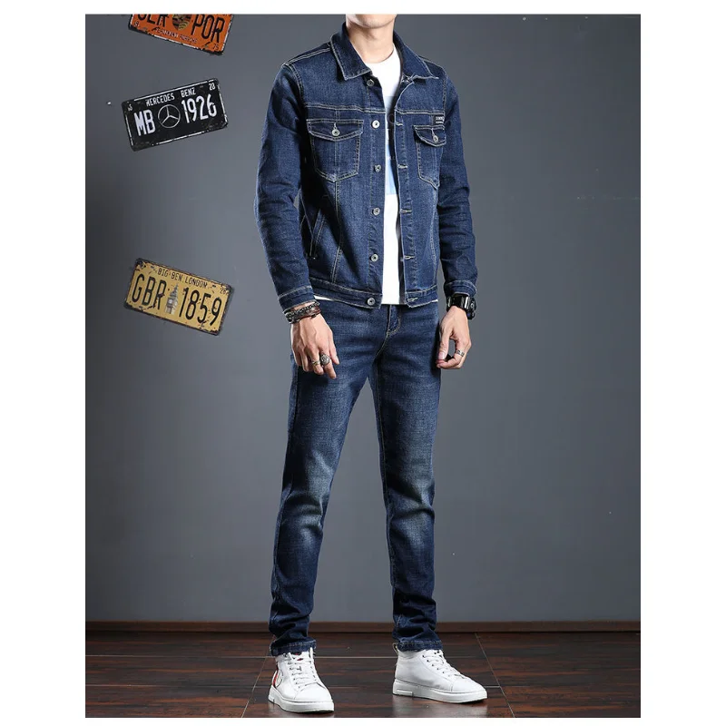 2026 printemps Denim veste hommes nouveau costume veste pantalon deux hommes printemps et automne je...