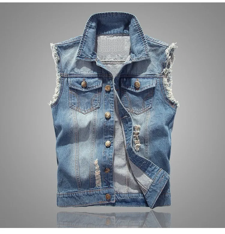 Gilet en jean pour homme style coréen sans manches coupe ajustée veste en jean grande ...