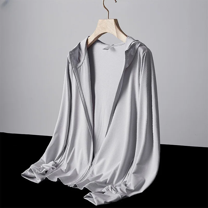 Veste d'été pour homme en soie glacée fine, protection solaire, sportswear &agr...