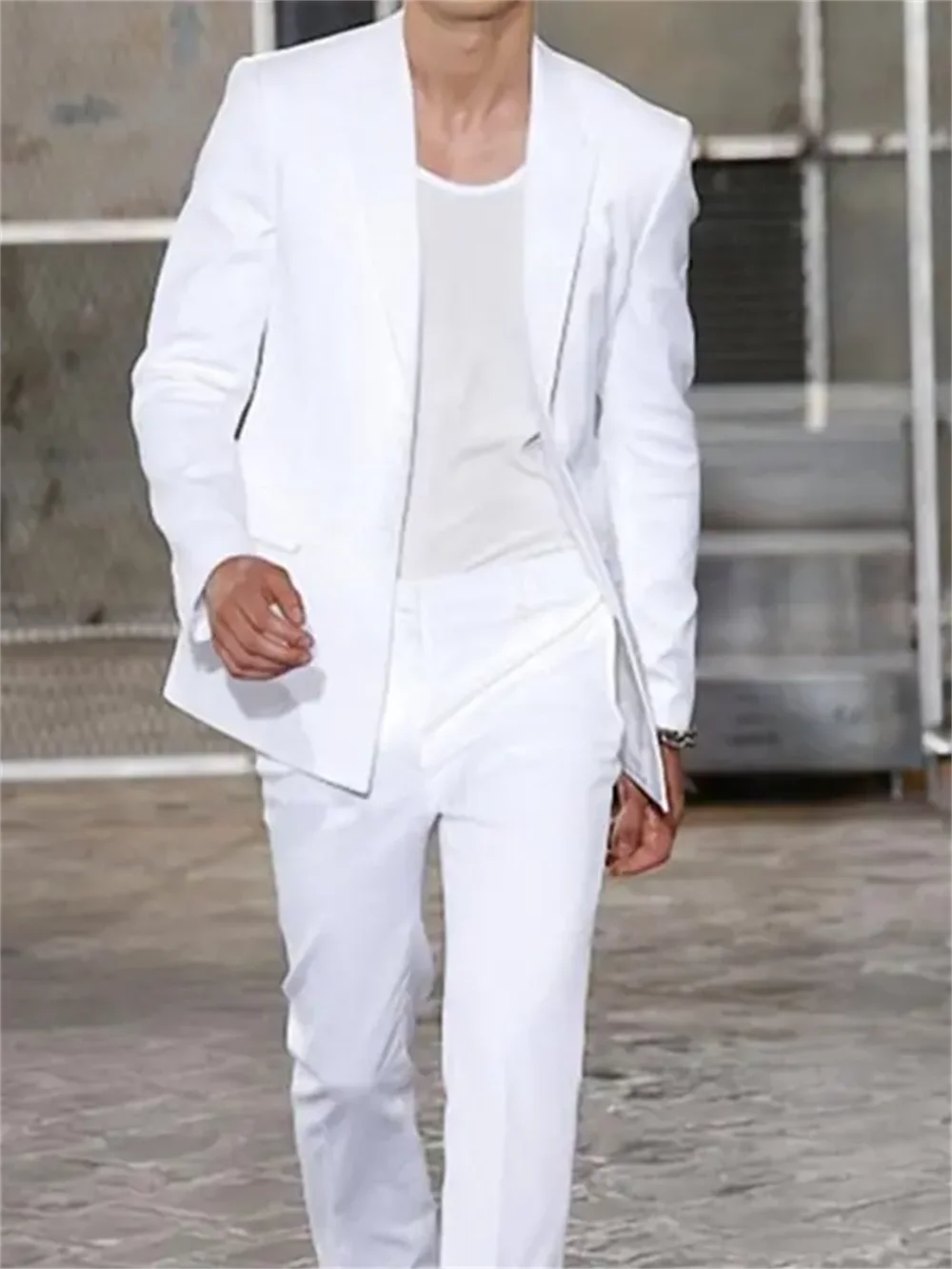 Veste longue 2 pièces pour hommes, smokings de marié blancs, olympiques de mariage pou...