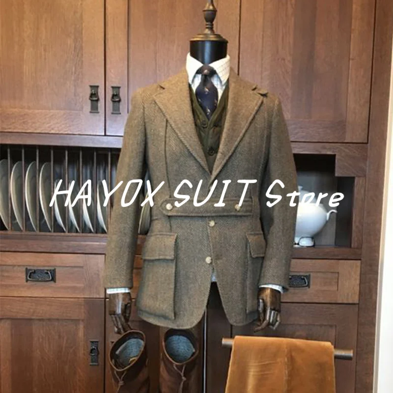 Veste pour hommes nouvelle veste rétro à chevrons pour hommes coupe ajustée d&e...
