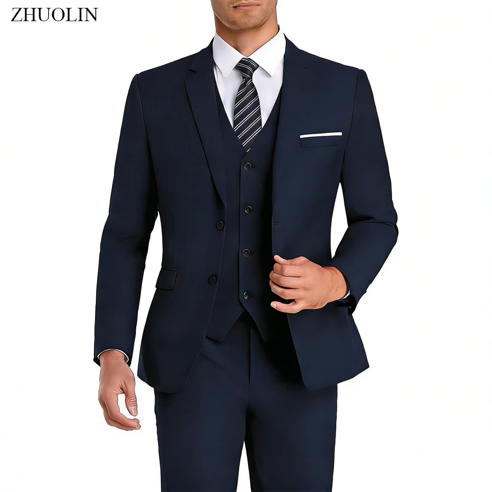 Ensemble de costume pour homme, 3 pièces, coupe ajustée, tenue formelle pour mariage, ...