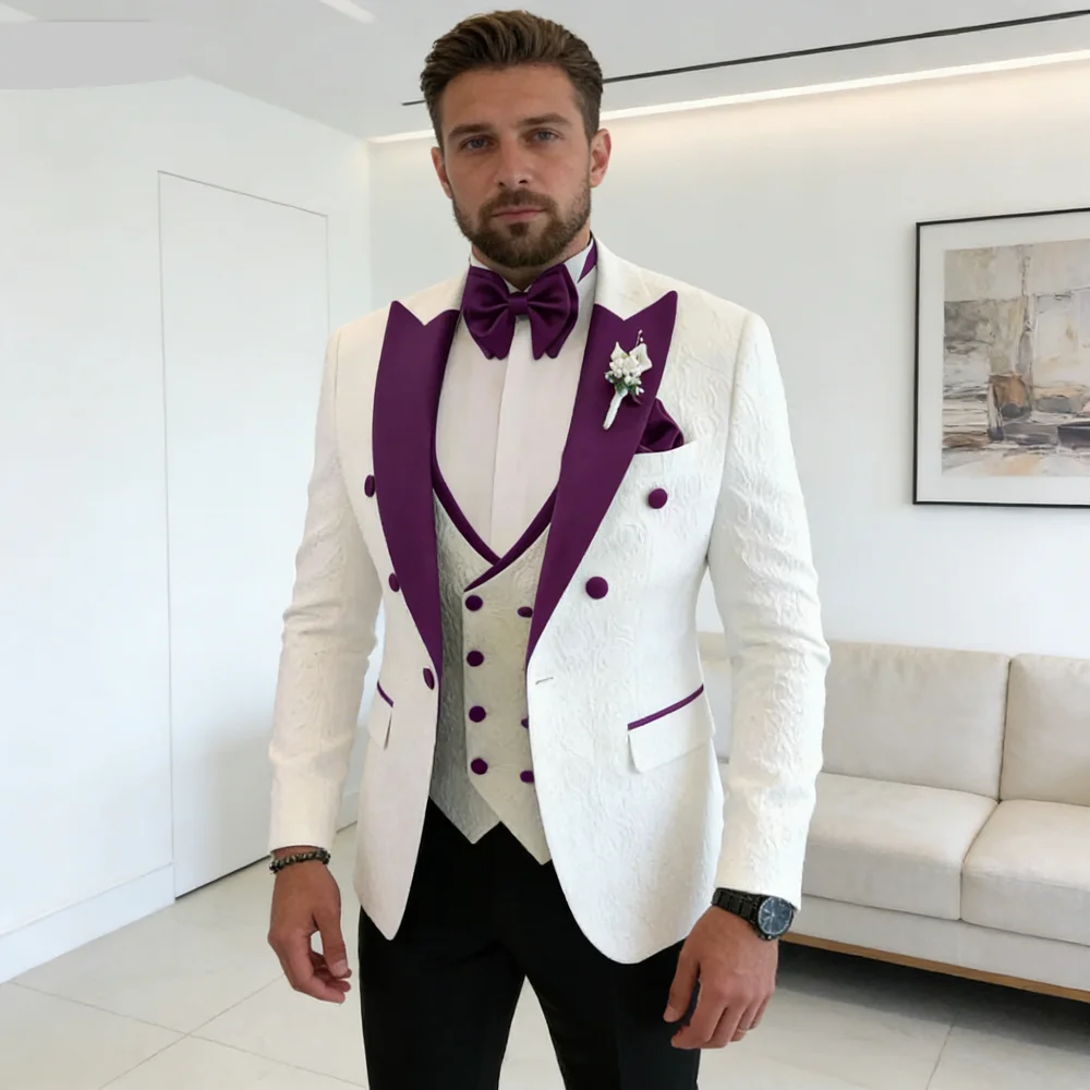 Ensemble de smoking de mariage à fleurs pour hommes, veste à Double boutonnage avec gi...