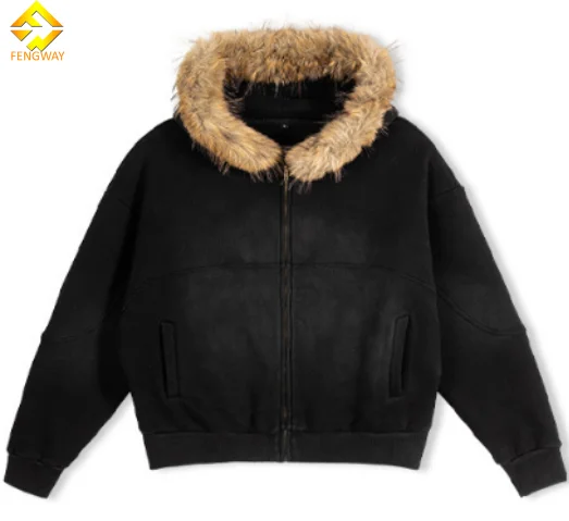 Nouveau Blouson Hoodie Zippé Rétro avec Col en Fausse...