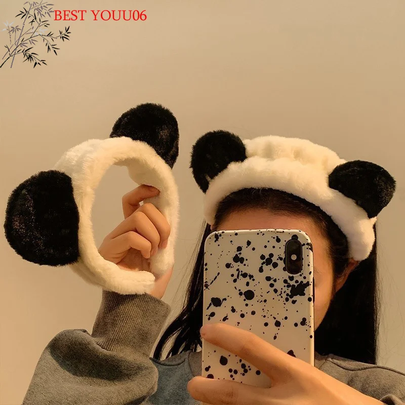 (YOUU06) Bandeau en peluche avec oreilles de panda, serre-tête pour le lavage du visage, suppo...
