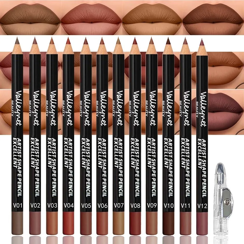 Ensemble de crayons à lèvres mats QIBEST, 12 couleurs, nuances nudes, crayon à ...