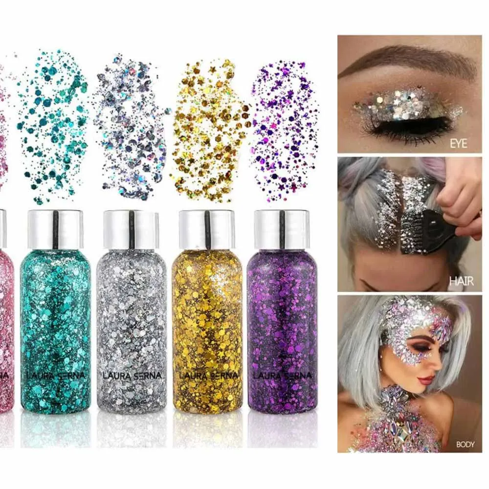 Gel Pailleté Visage & Corps, Paillettes pour Ongles, Cheveux, Visage et Corps, Neuf Coule...
