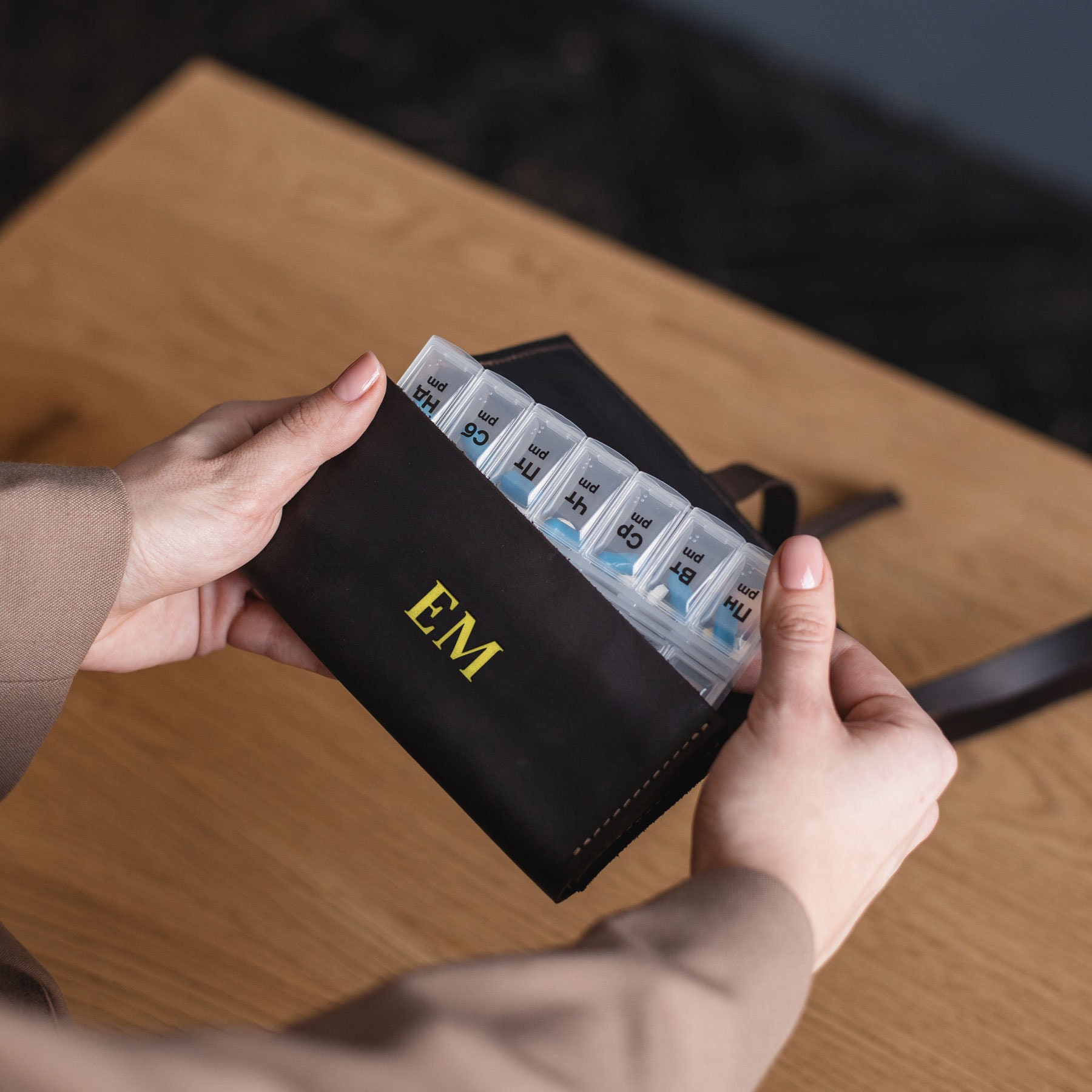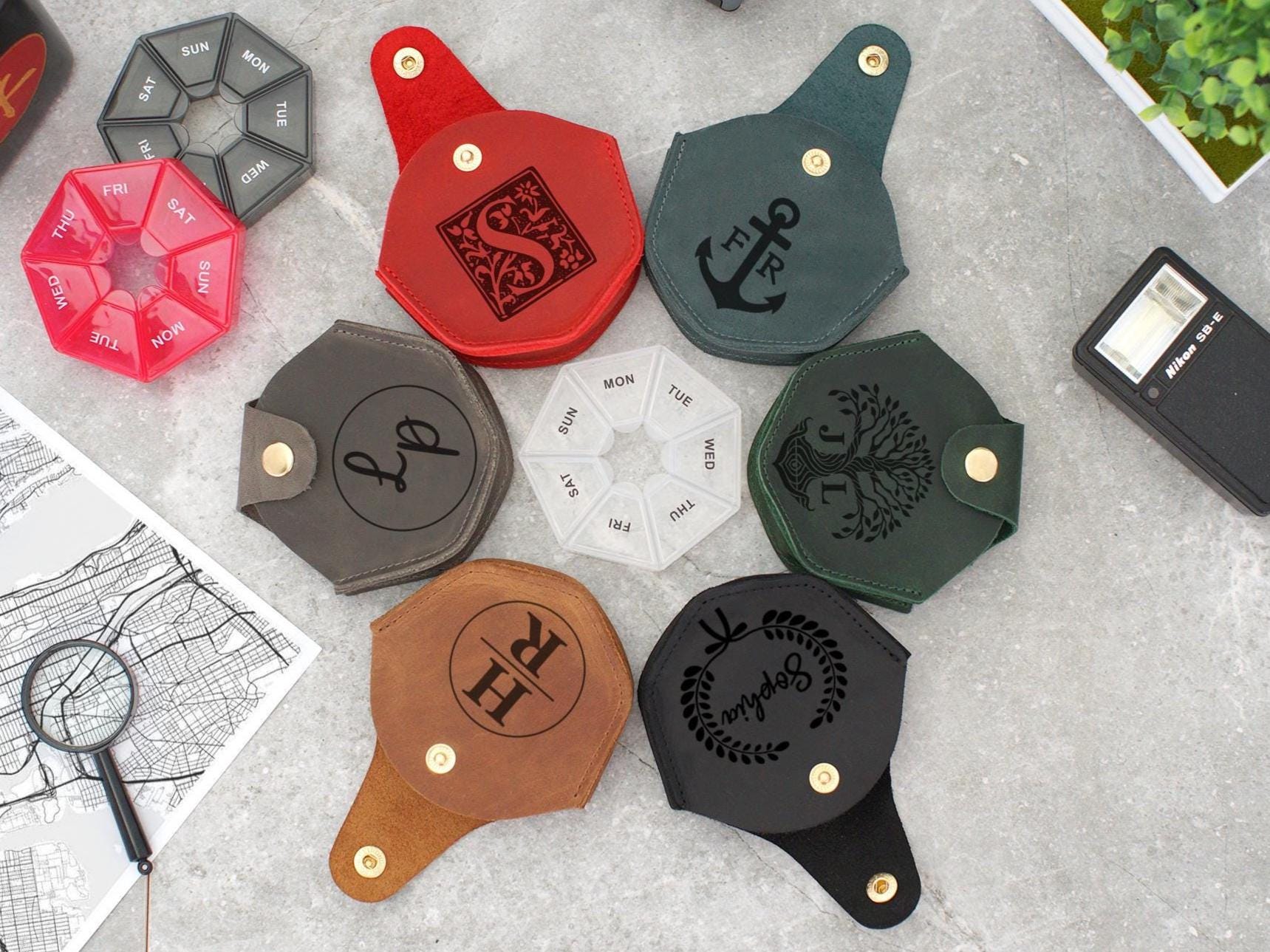 Etui à pilules en cuir, Etuis à pilules personnalis&e...