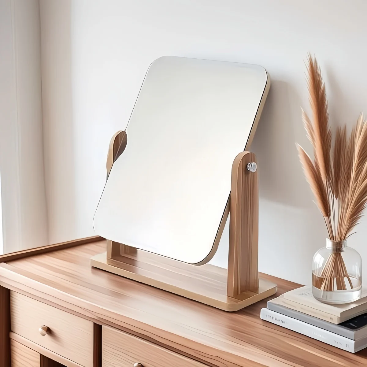 Miroir de maquillage de bureau en bois en option réglable à 360 degrés miroir d...