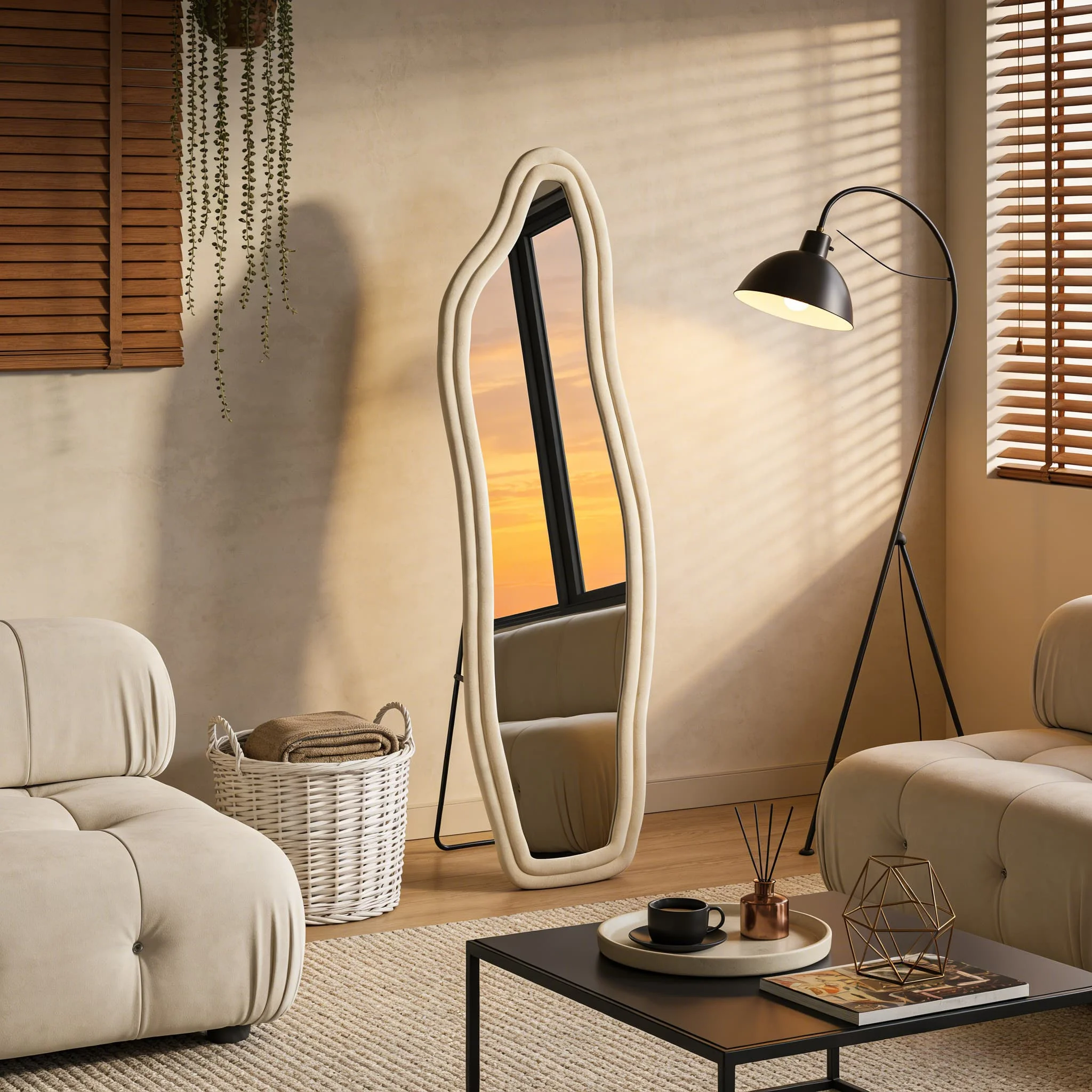 MGMYM Miroir Plein Pied Design Nuage, Cadre en Velours, Verre Trempé HD, Miroir à Pose...