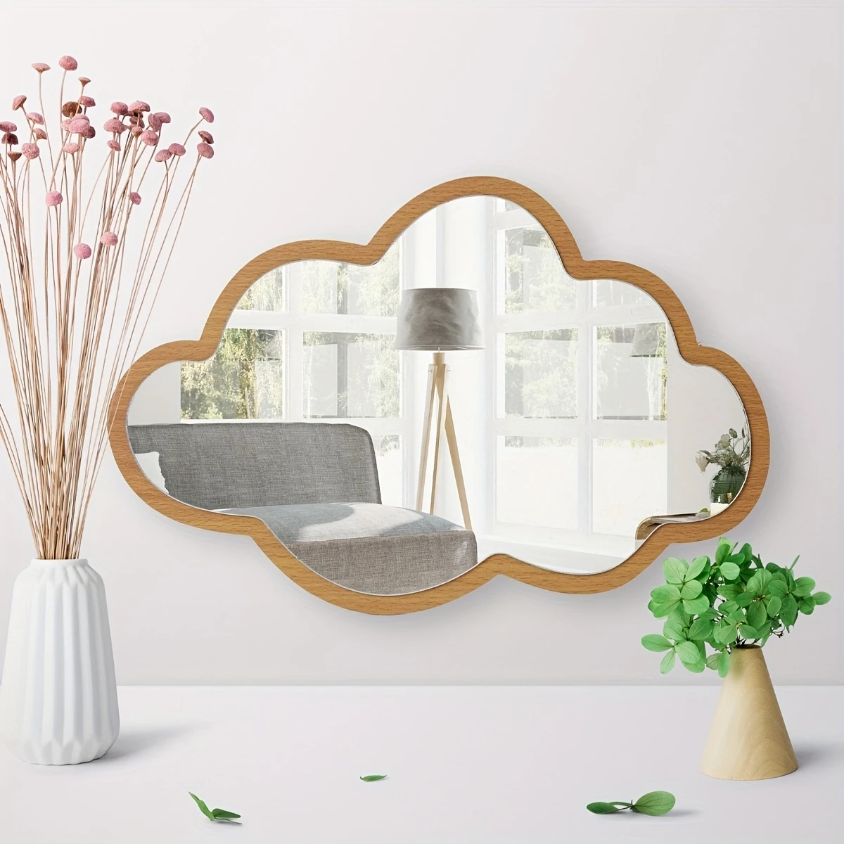 Miroir décoratif Double couche en bois acrylique, Design nuage mignon de 14 pouces, miroir mu...