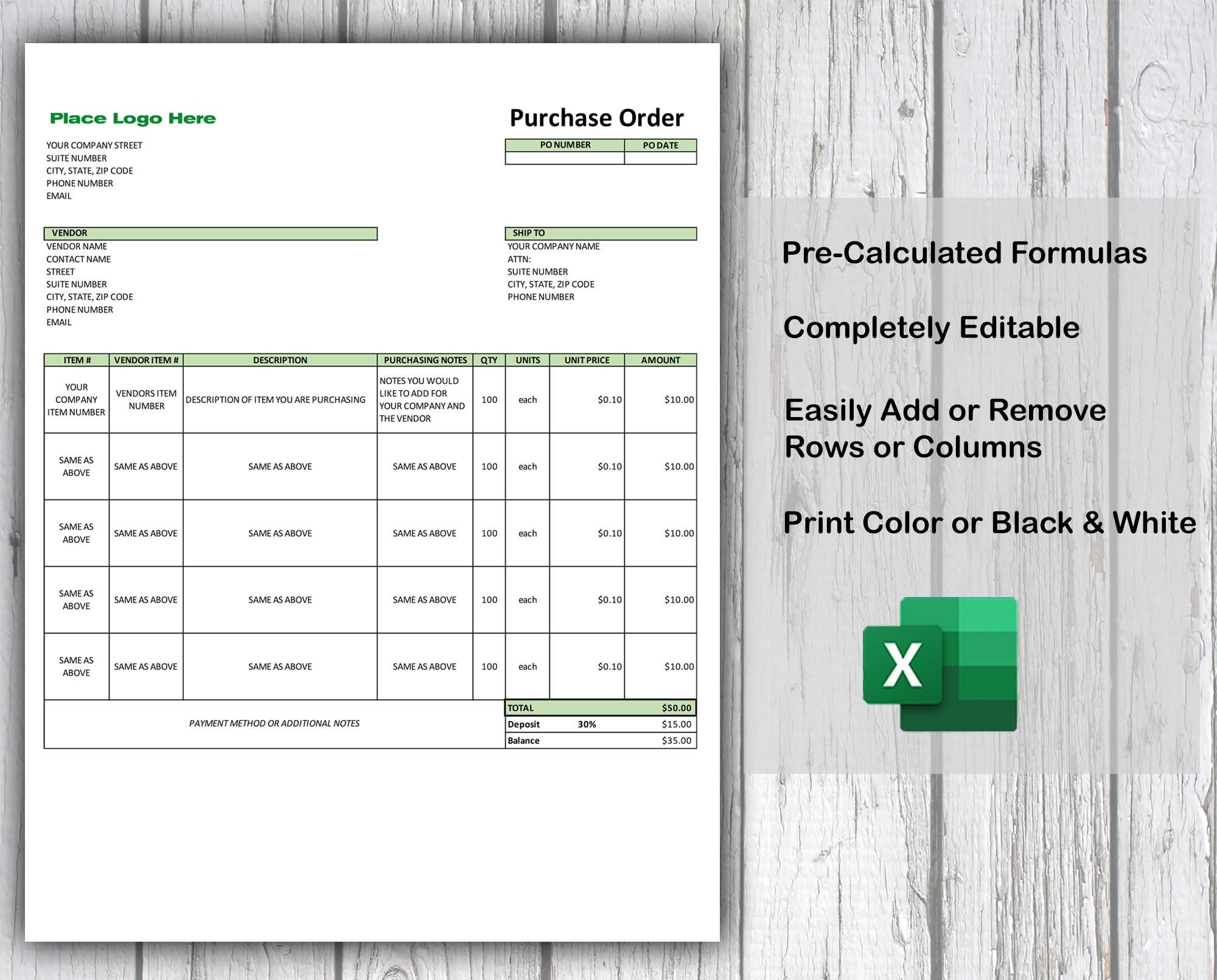Formulaire de bon de commande parfait et simple * Formules précalculées * Entiè...