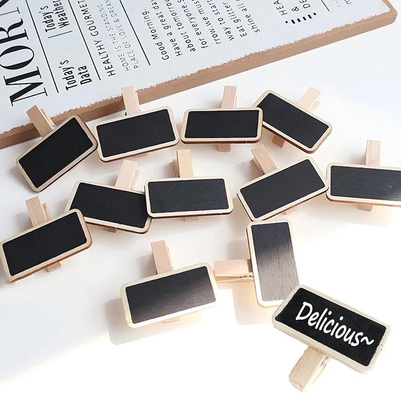 Nouveaux clips en bois pour mini-tableau noir, supports rectangulaires pour messages DIY, mém...