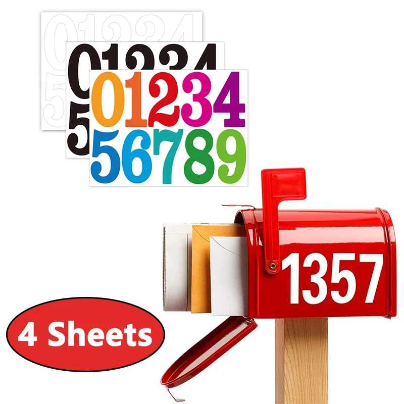 Étiquettes numériques en vinyle auto-adhésives, 4 feuilles d'autocollants num&e...