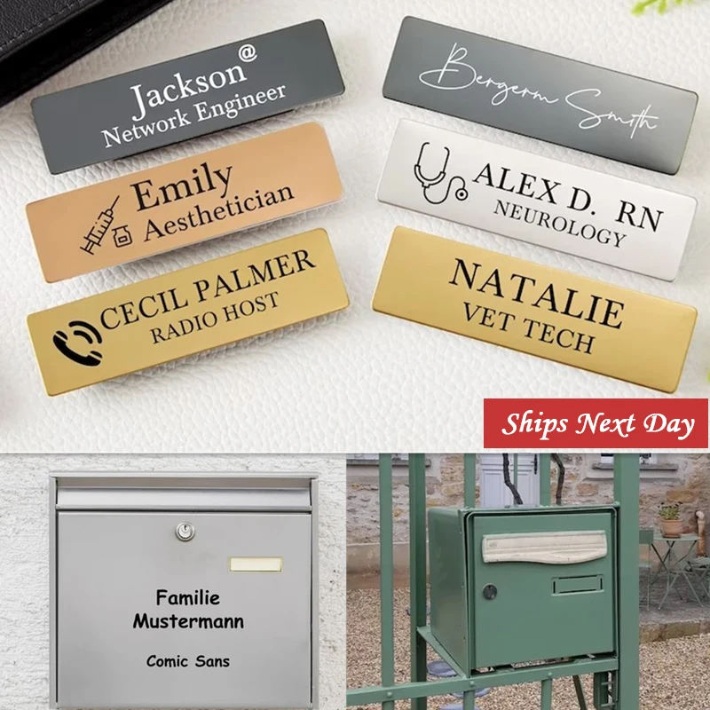 • Étiquette nominative personnalisée en acier inoxydabl...