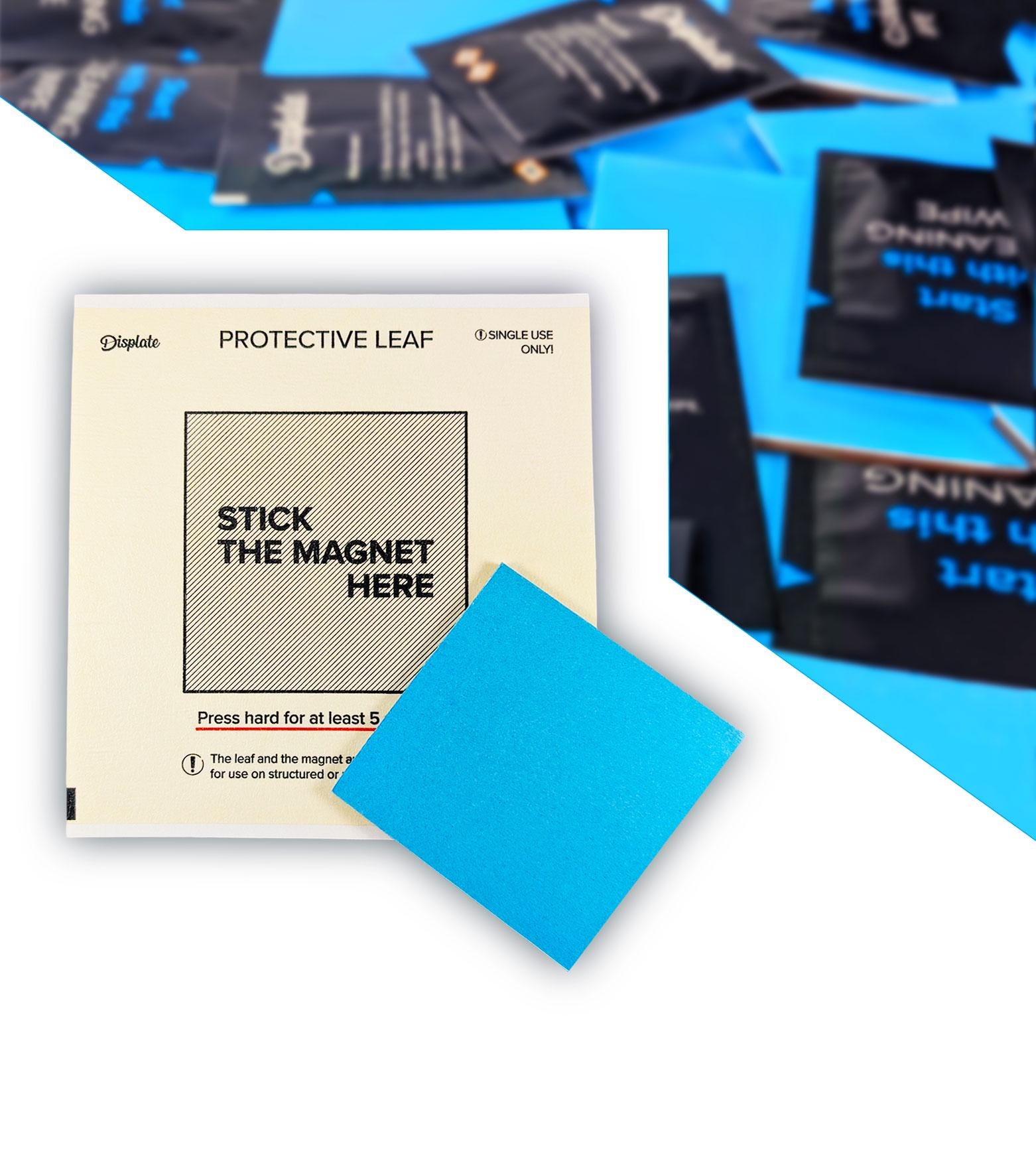 Supports magnétiques Displate composés d'un aimant et d'une feuille de protection. Sup...