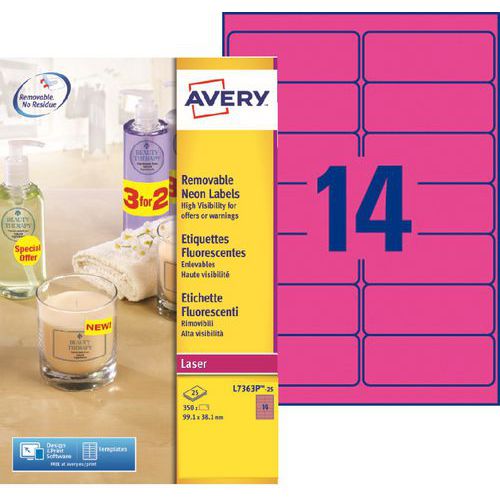 Étiquette fluorescente repositionnable Avery - Impression laser - Coloris : Rose Emballage re...