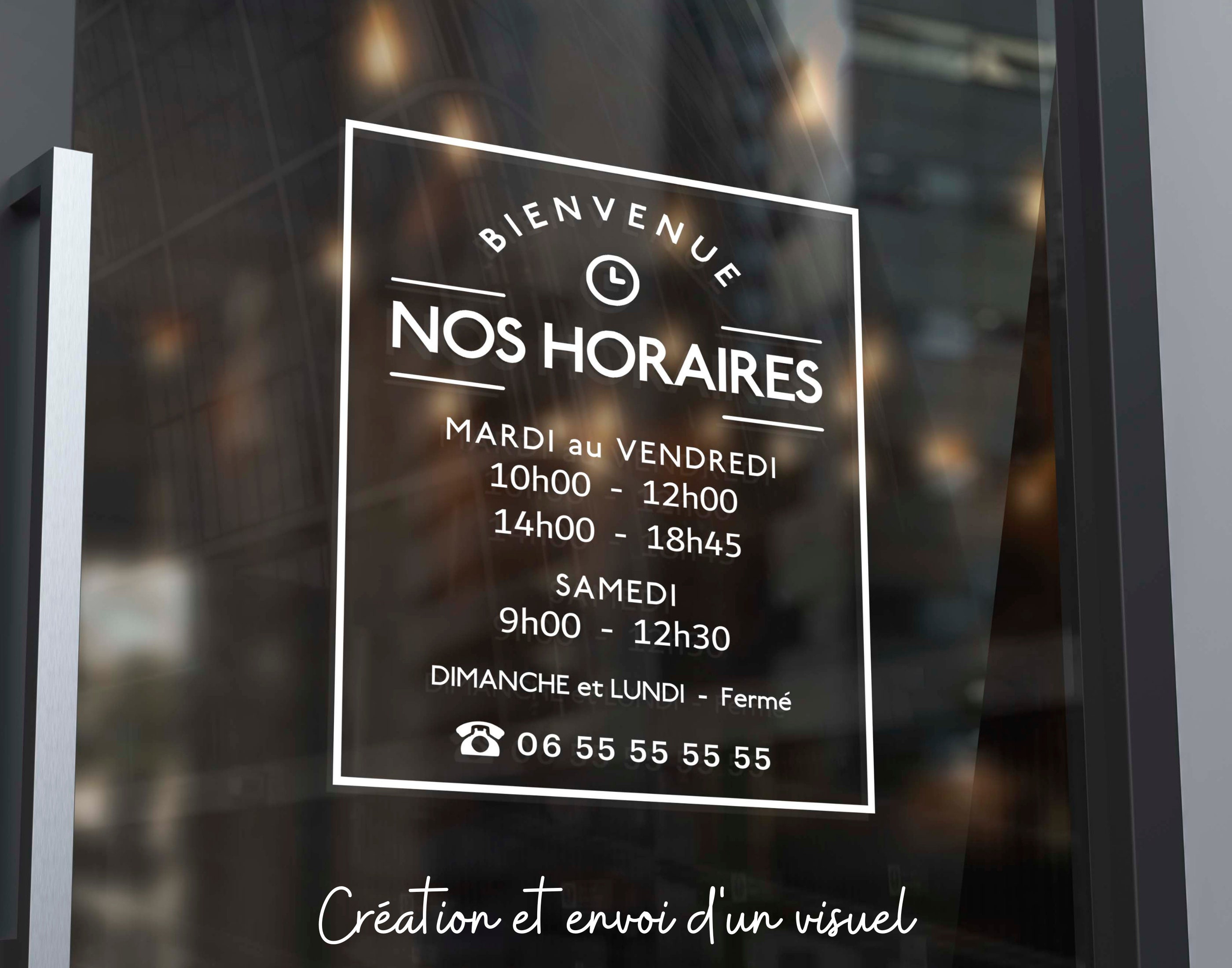 "Stickers, Adhésif Vinyle Vitrophanie \"Horaires d...