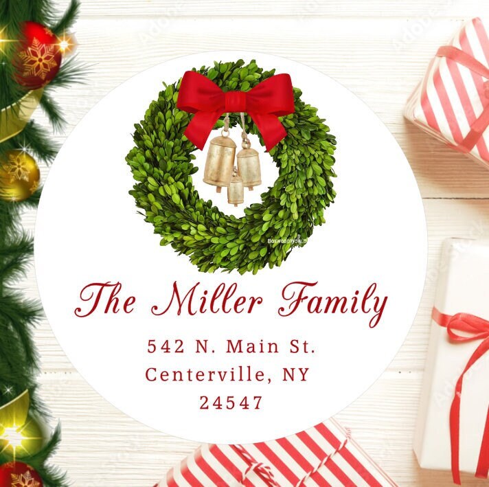 Étiquettes d'adresse de vacances de couronne de Noël, &...