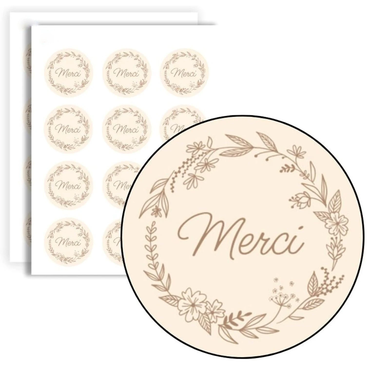 120 autocollants circulaires "Merci" - Étiquettes de remerciement avec couronne flo...