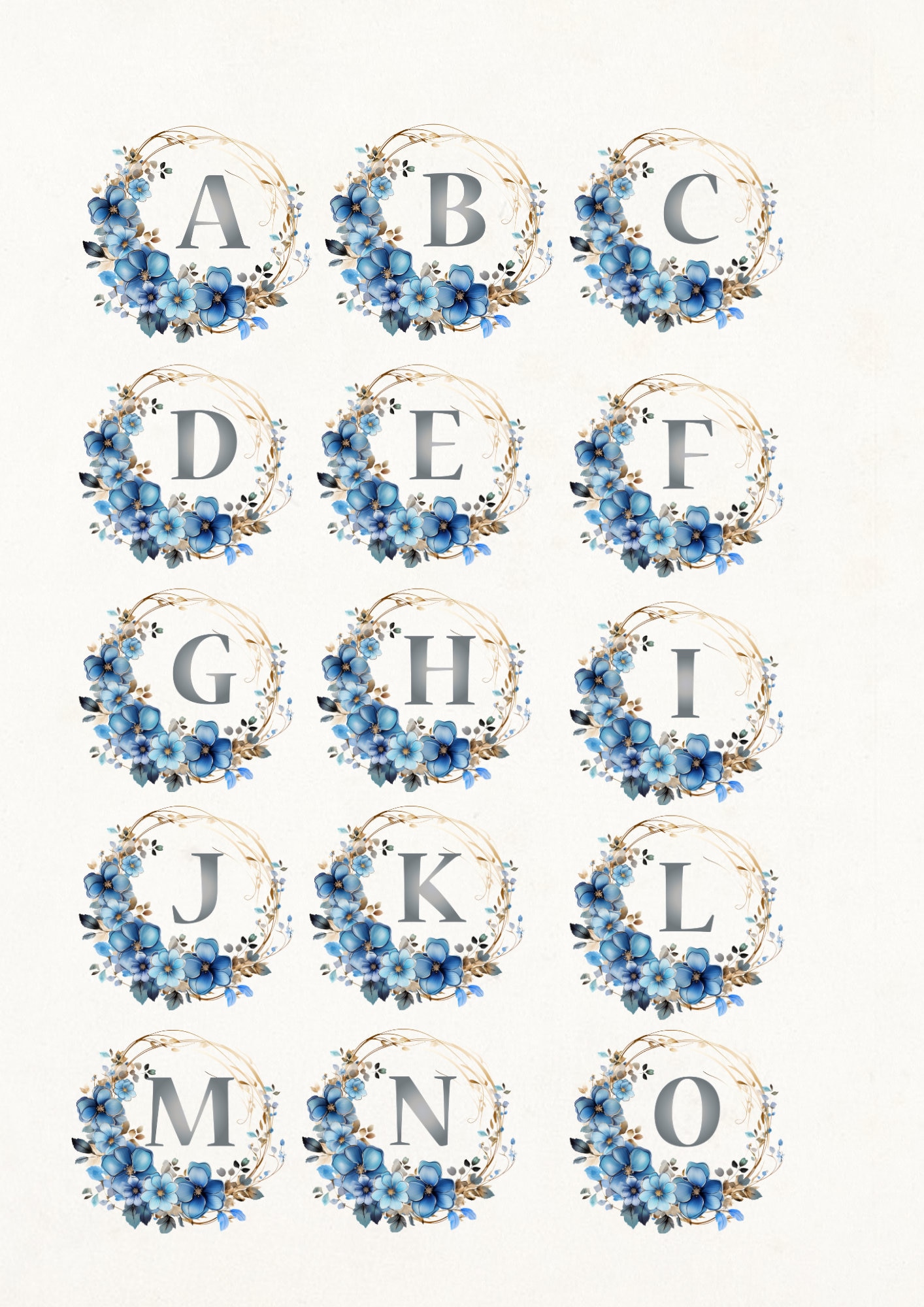 Bundle PNG monogramme couronne, monogramme floral, modèle initial, pochoir lettre, alphabet m...