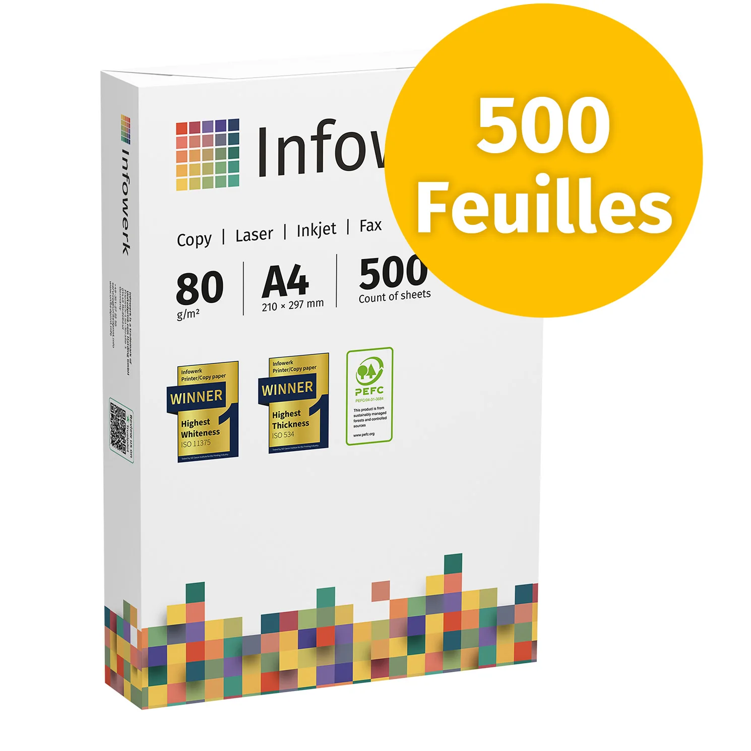 Infowerk Papier A4 pour Imprimante 500 Feuilles (1 x 500) – Papier Blanc Premium 80 g/m² ...