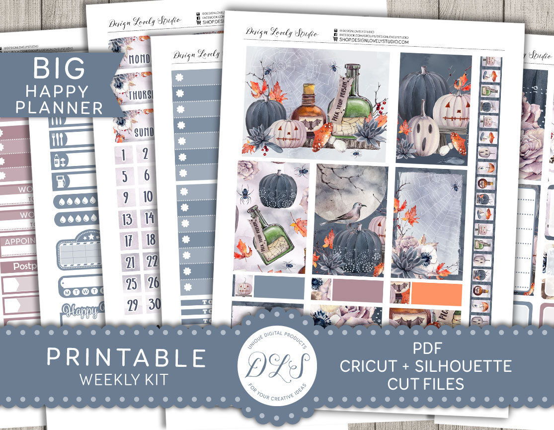 Stickers d'Halloween imprimables Big Happy Planner, Kit d'agenda he...