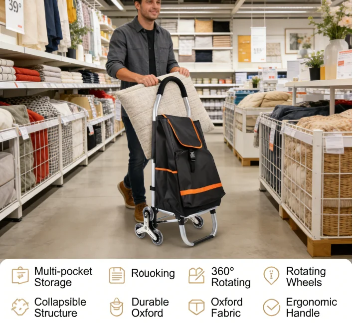 Caddie de courses pliable avec compartiments pratiques, capable de monter les escaliers, caddie de c...