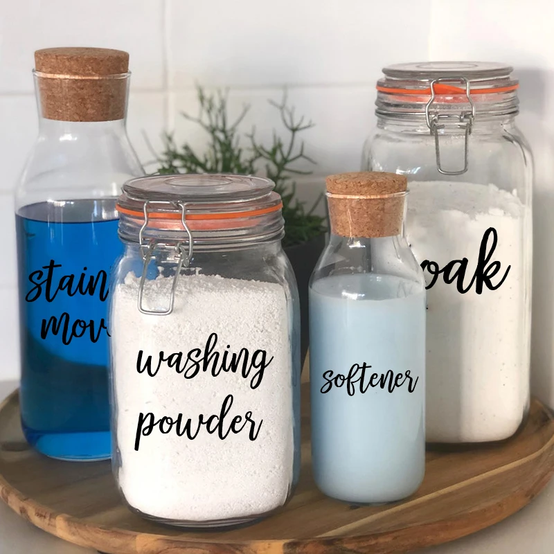 4 pièces buanderie Organization pot bouteille étiquette vinyle autocollant déca...
