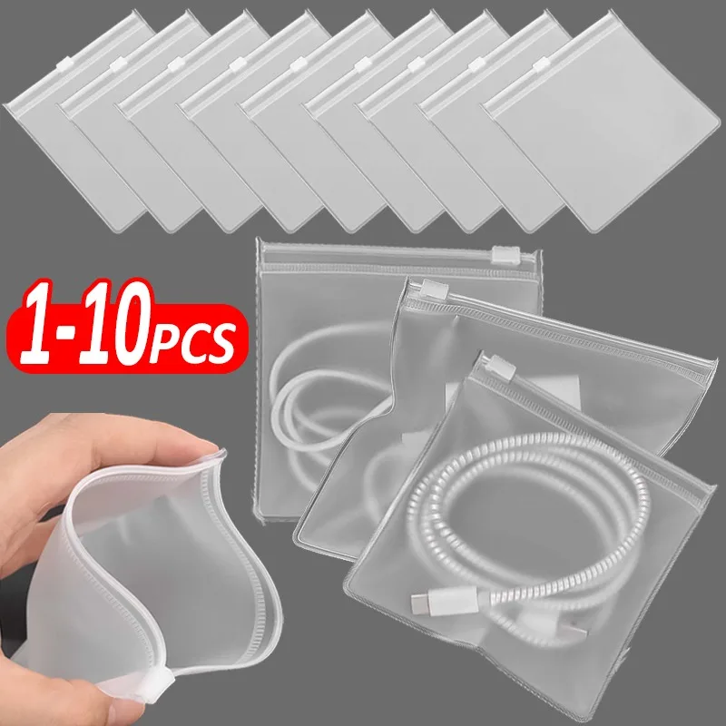Pochettes transparentes en PVC à fermeture éclair, sacs de rangement pour chargeur, c&...