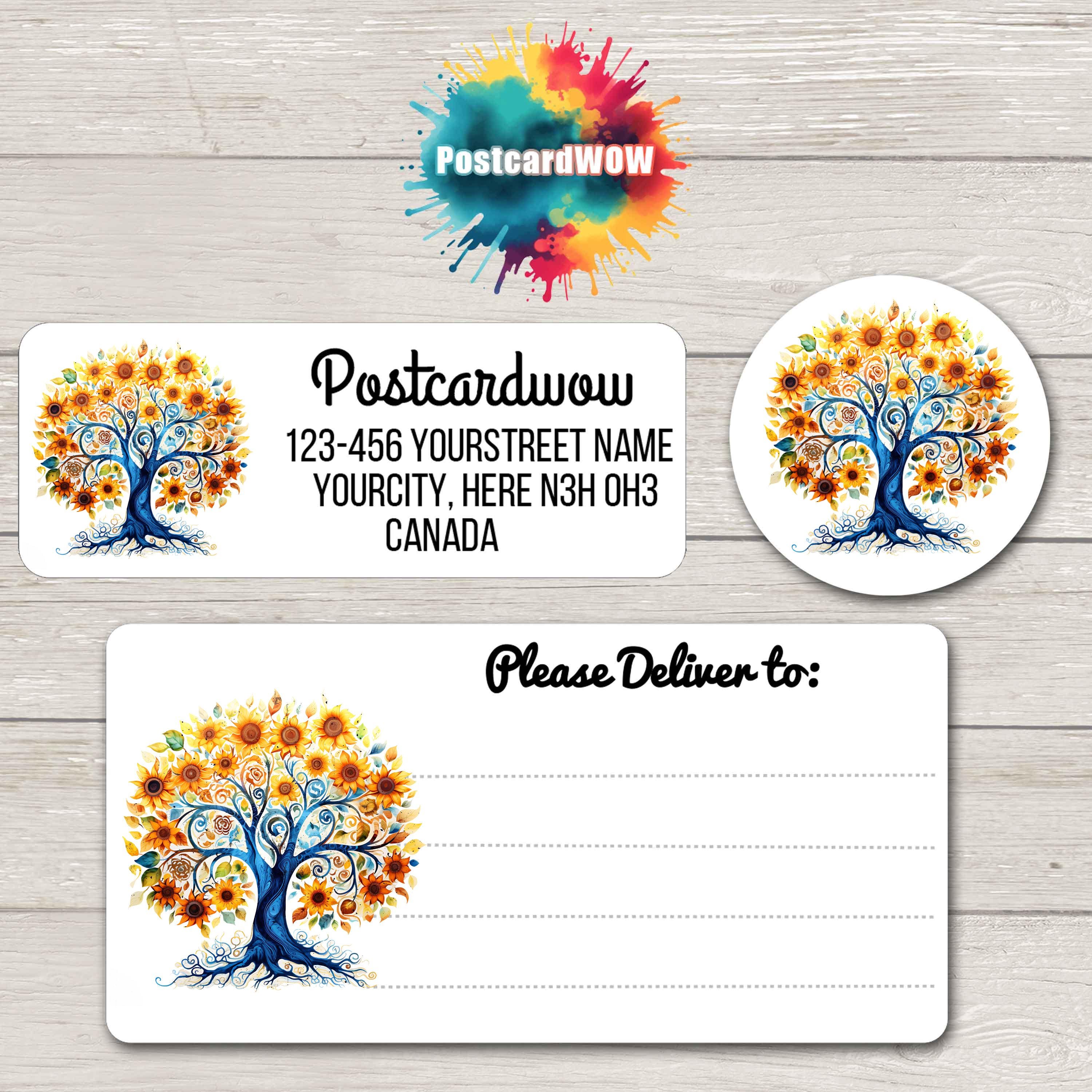 Sun Flower Tree - Etiquettes d'adresse de retour - Feuilles de 30 a...