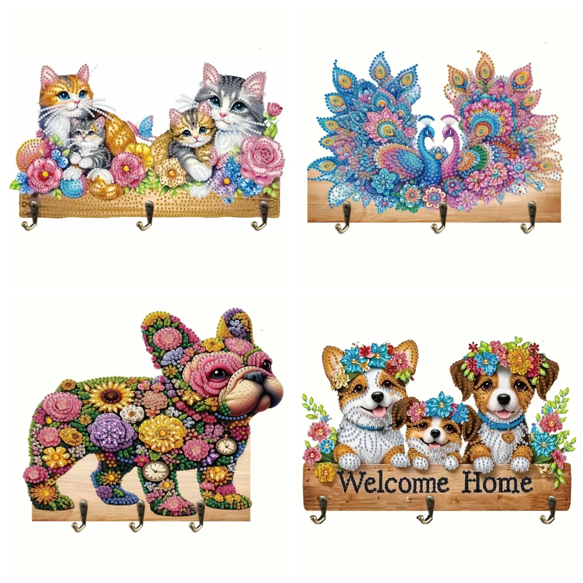 1 pièce/ensemble bricolage chiens diamant Art crochets muraux pour accrocher mural porte-mant...