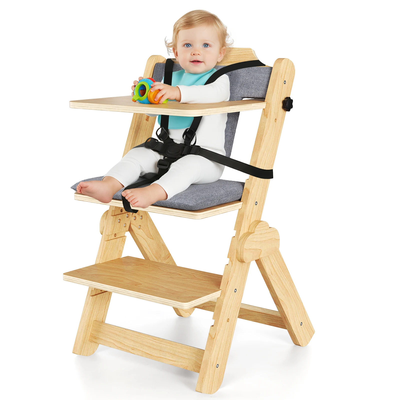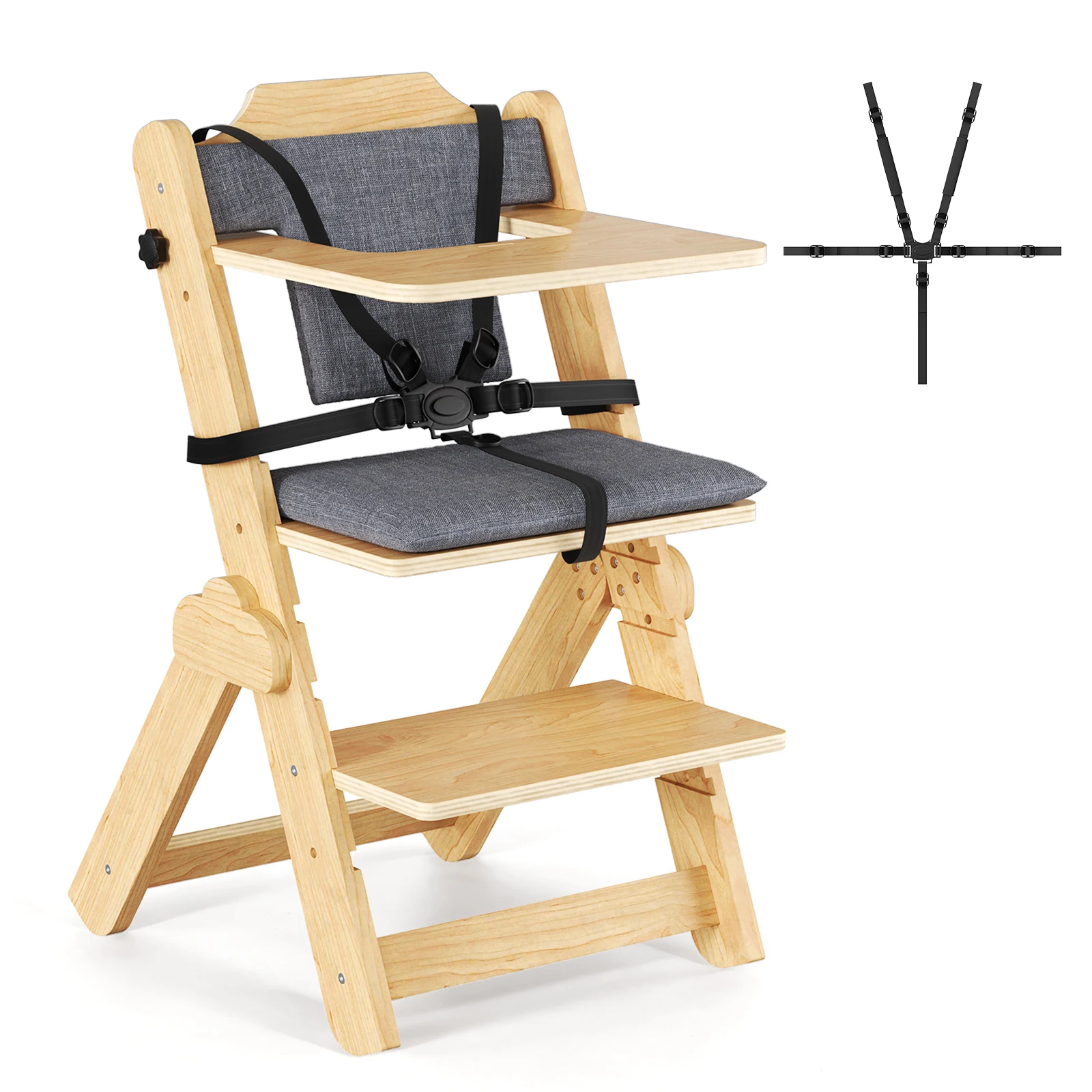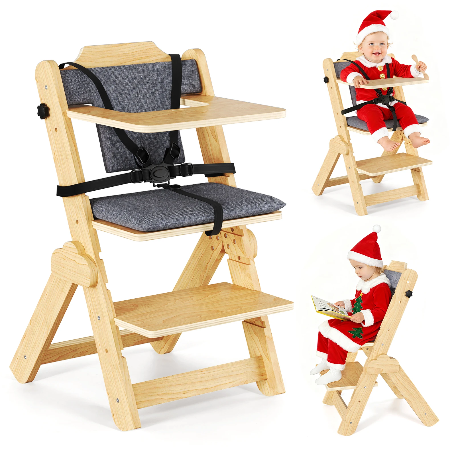 Chaise haute réglable en hauteur pour tout-petits assis en bois naturel de 6 mois, plateau am...