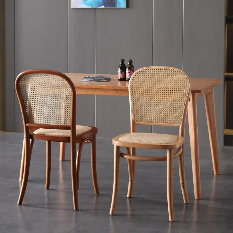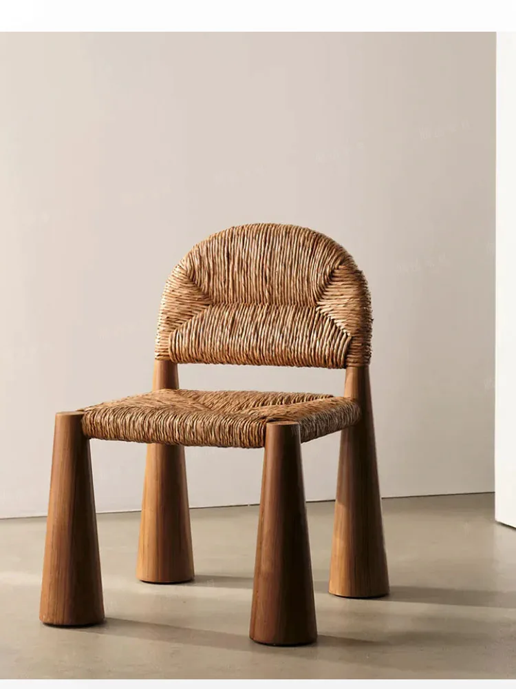 Chaise à dossier tissé en rotin rétro, chaise en bois massif, siège de s...