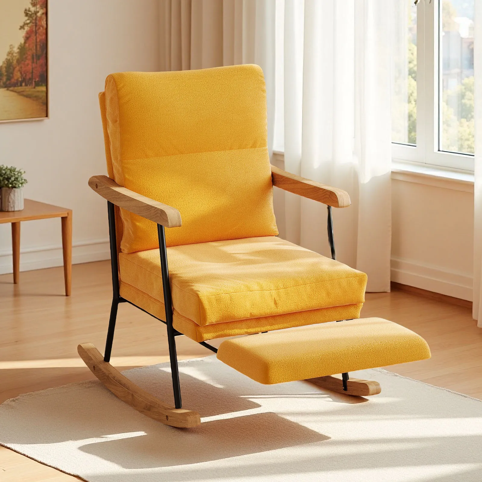 Comanlai chaise à bascule avec repose-pieds, chaise de loisirs avec accoudoirs et pieds en bo...