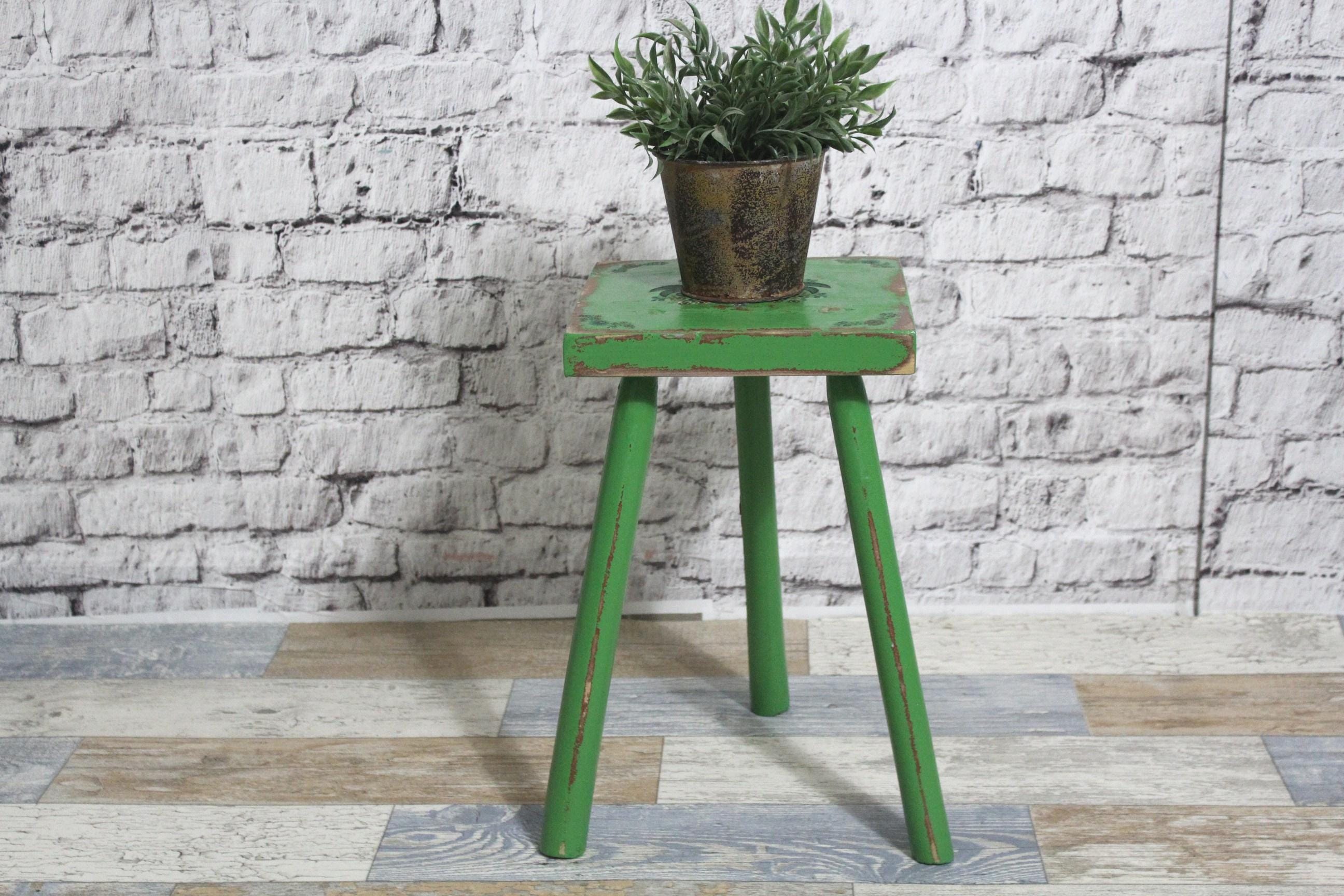 Ancien tabouret tripode en bois vert foncé pour traite, ann&...
