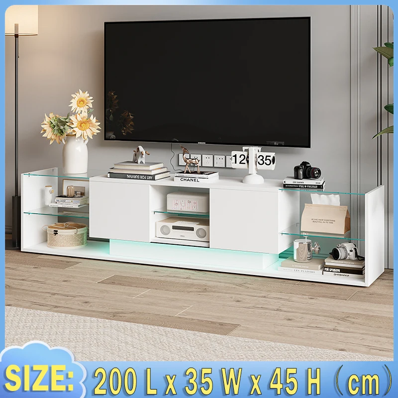 Meuble TV sur pied 180 x 40 x 48 cm, meuble bas avec éclaira...
