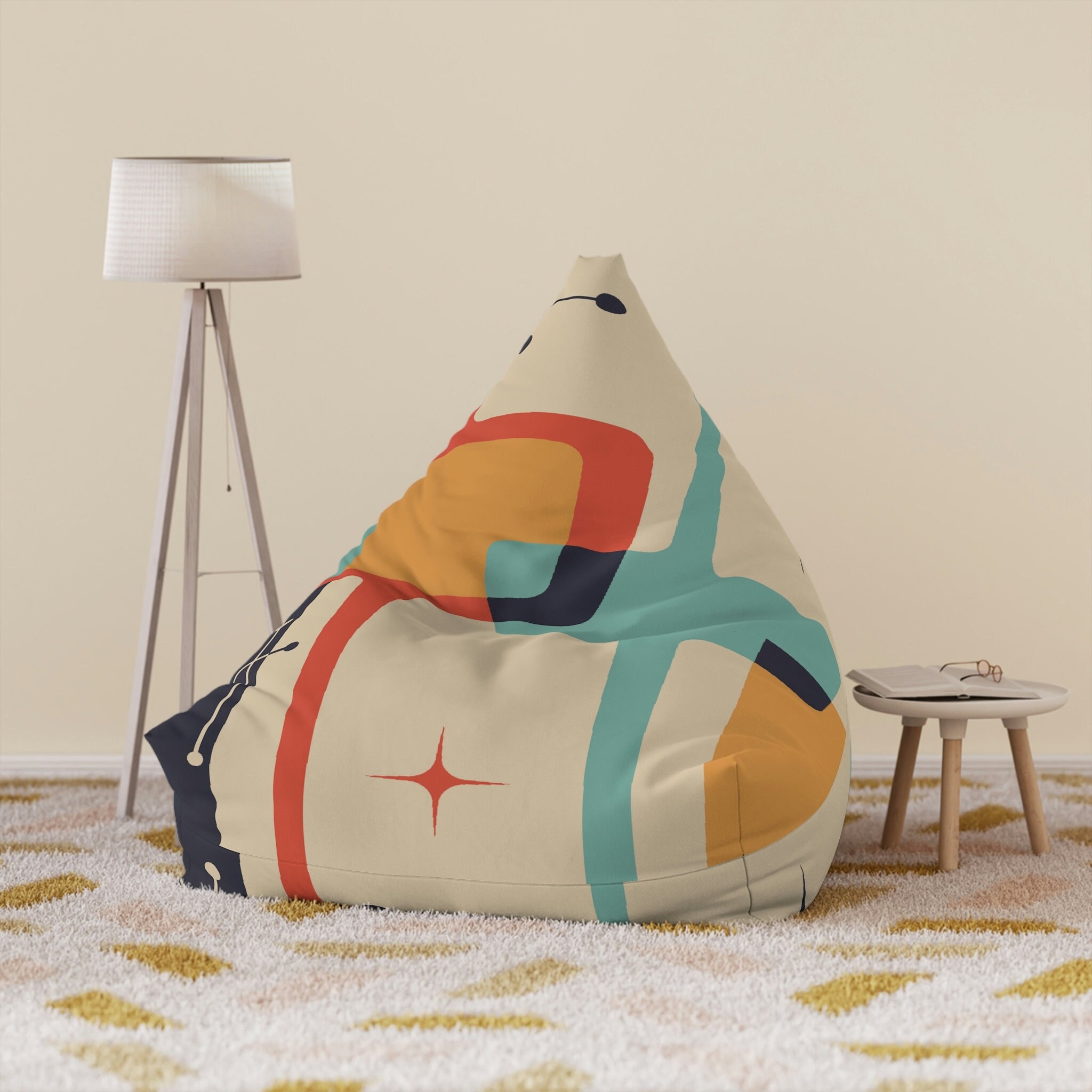 Mid Century Modern Atomic Starburst Bean Bag Chair Cover, Retro Bei...