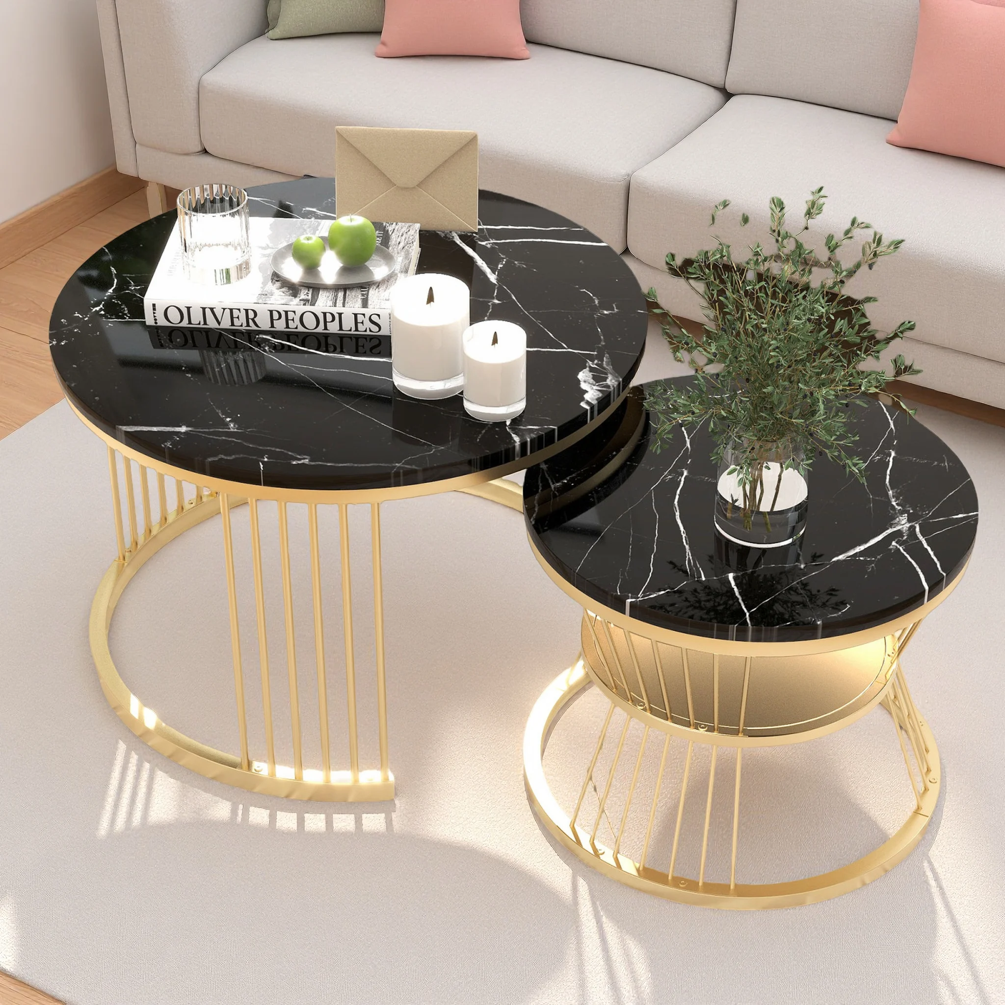 Table basse moderne, ensemble de tables basses avec placage en marbre, tables d'appoint rondes, lot ...