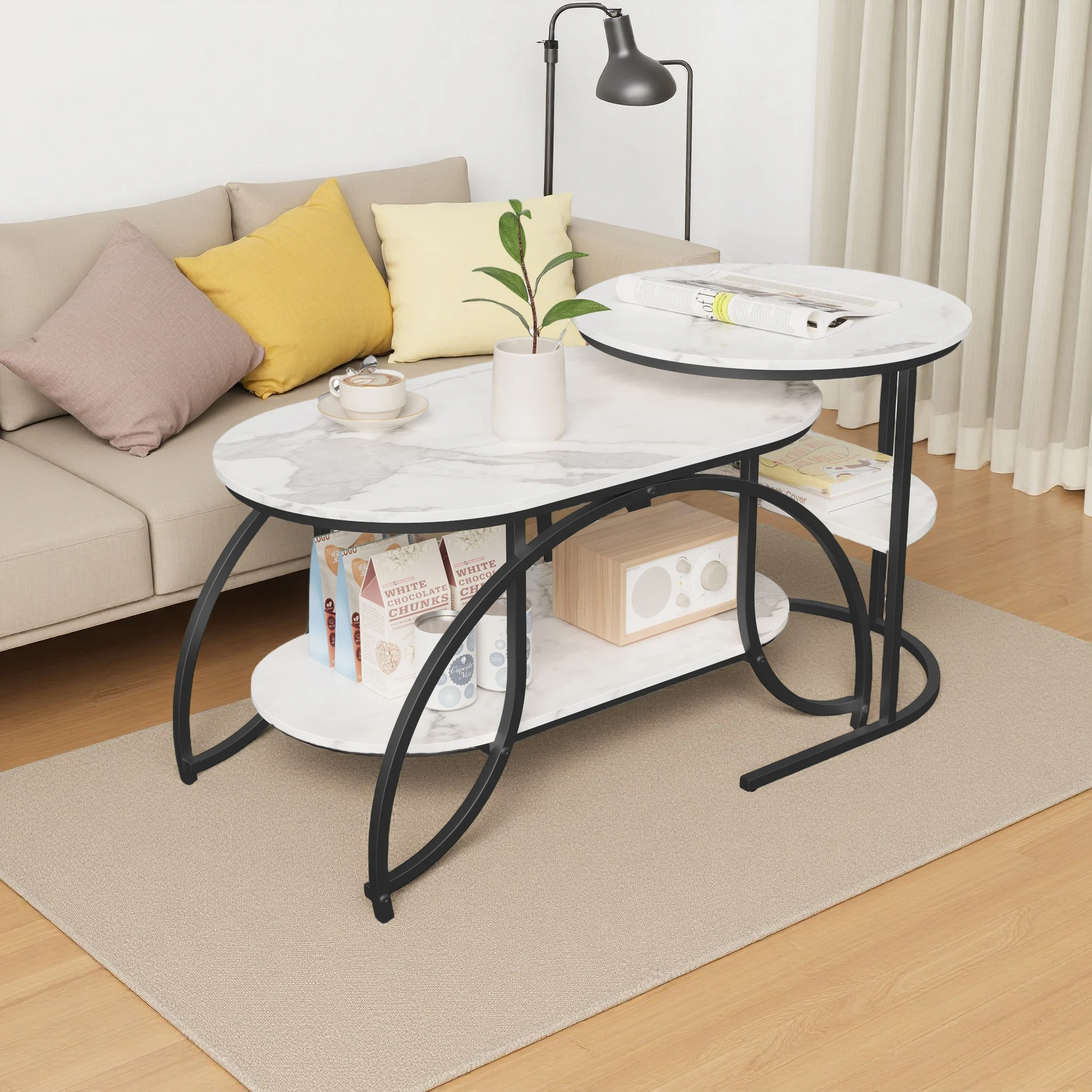Comanlai Table basse gigogne moderne ensemble de table basse placage de marbre canapé cô...