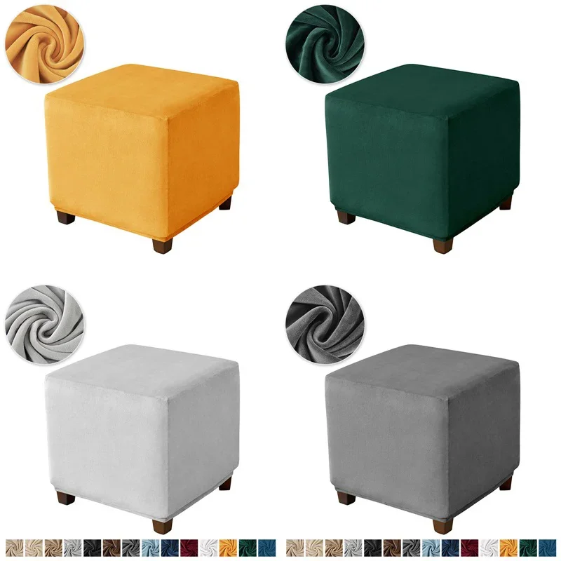 Housse de repose-pieds en velours, élastique, carrée et rectangulaire, solide, pour ca...