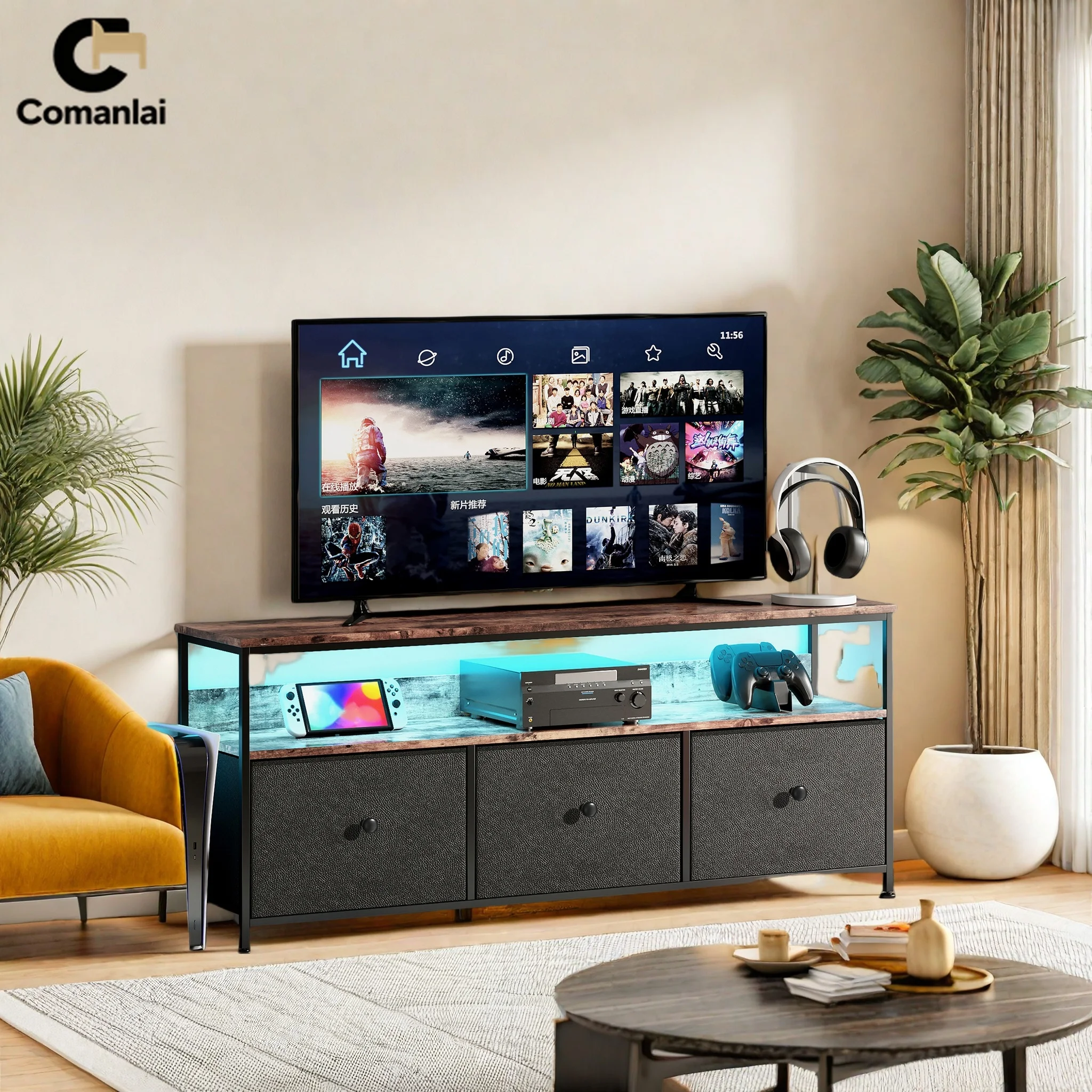 Comanlai Meuble TV 108 cm avec 3 tiroirs en tissu, commode, meuble ...