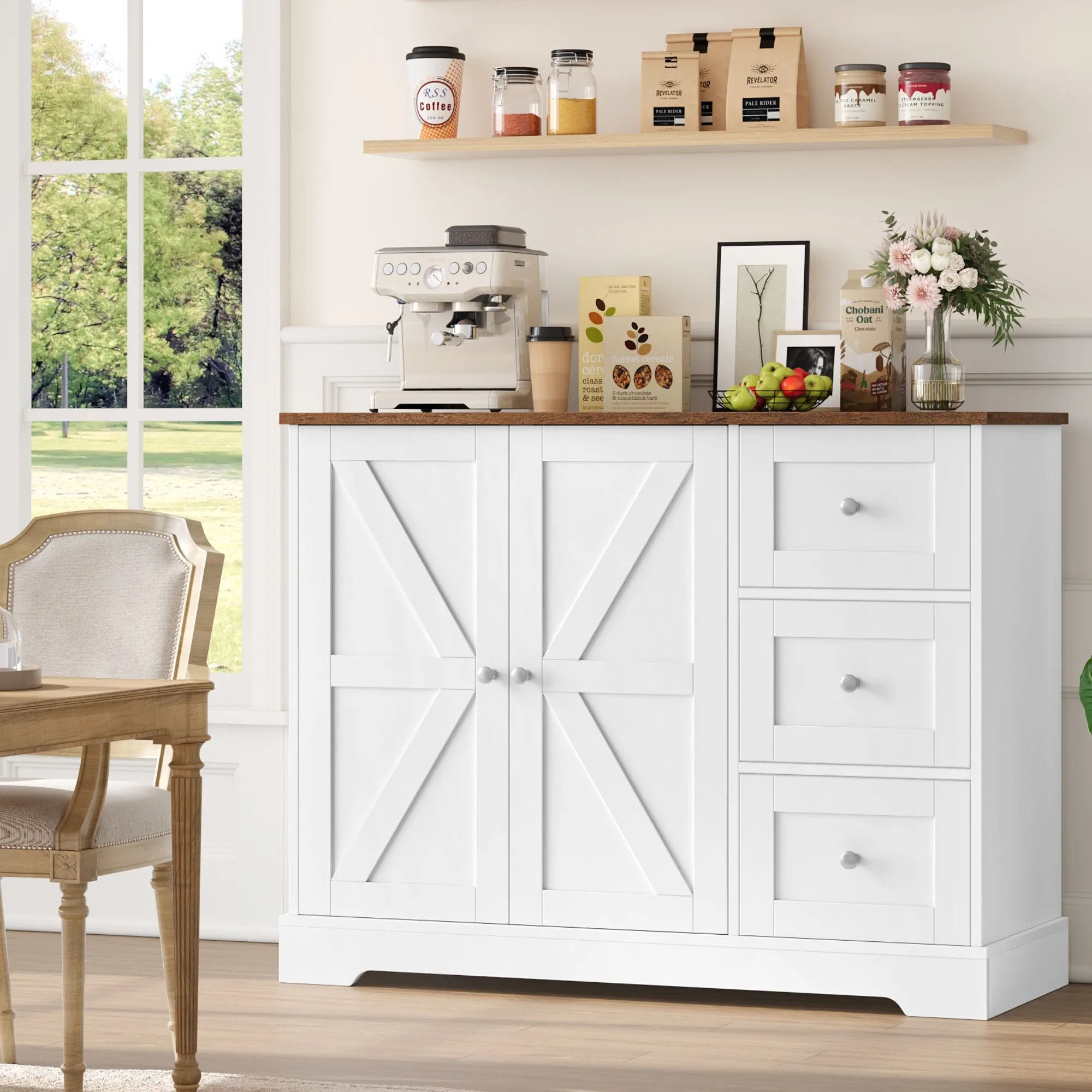 Comanlai Buffet 137 cm, armoire de cuisine blanche avec espace de r...