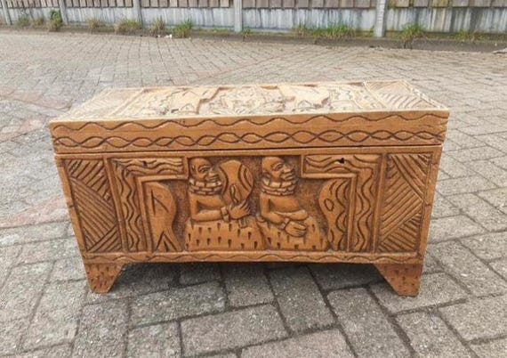 Beau coffre en bois, avec traces d'utilisation Année inconnue H42,5 cm D29 cm L75,5 cm