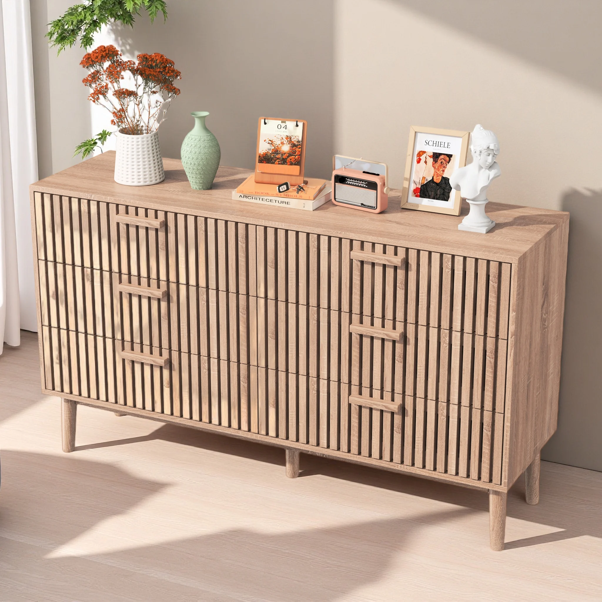 Comanlai Meuble de rangement en bois avec 6 tiroirs, buffet de cuisine avec pieds en bois, meuble de...
