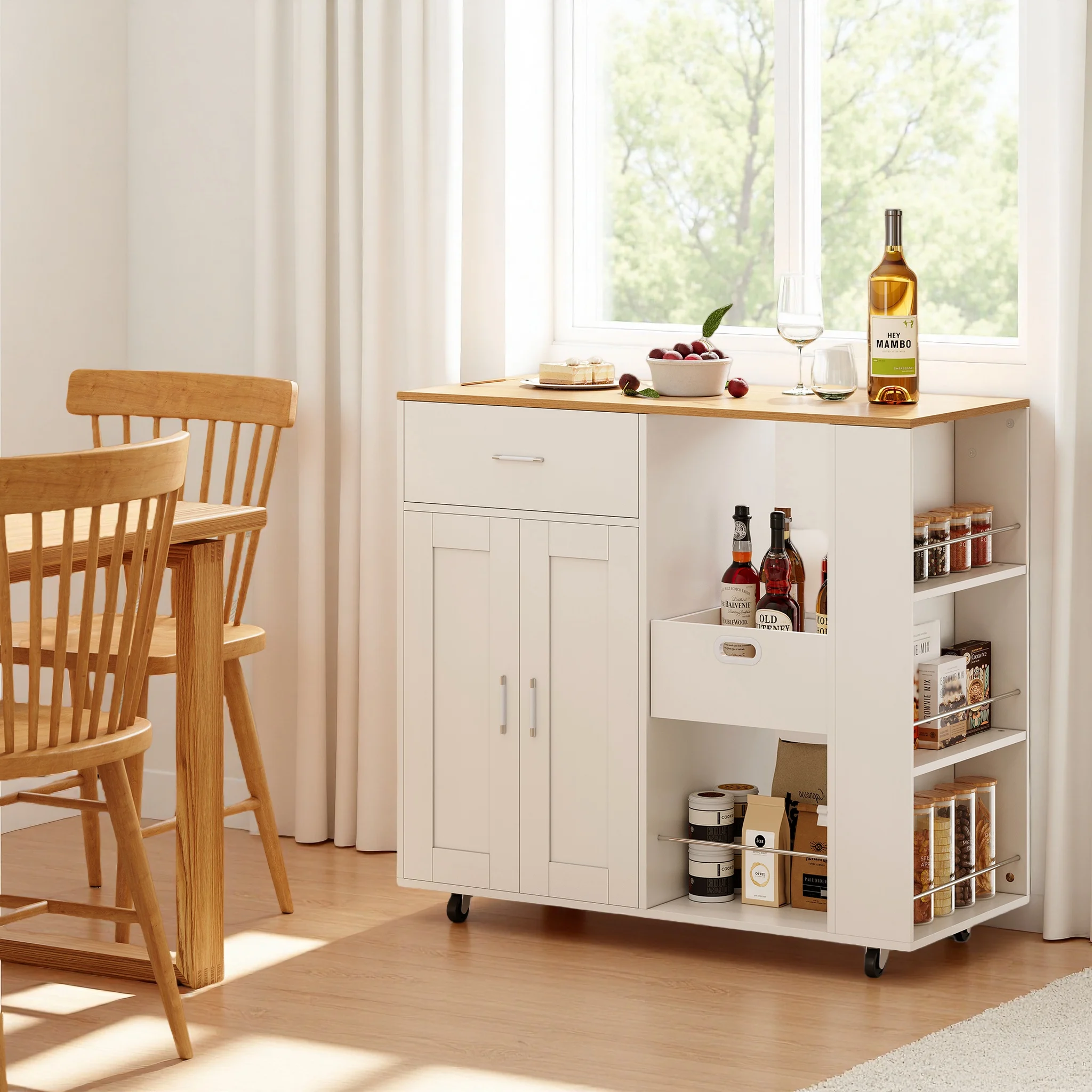 Îlot de cuisine sur roulettes, îlot avec étagère à épices et...