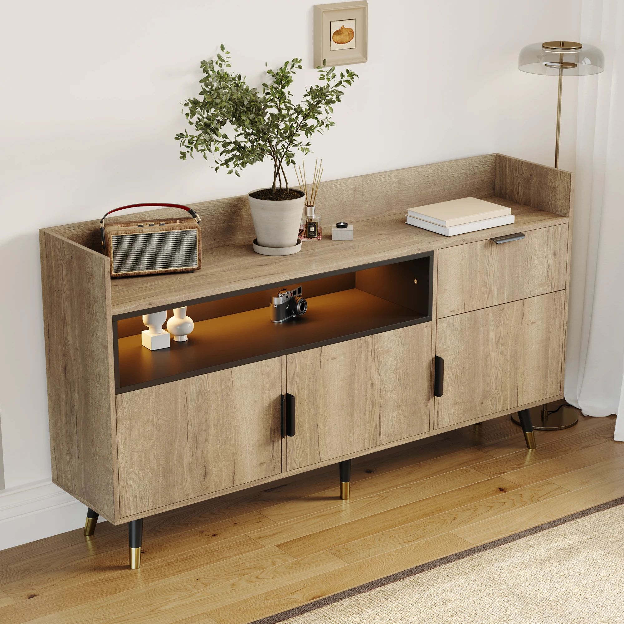 Buffet en bois pour chambre, salle à manger, cuisine, avec éclairage LED, étag&...