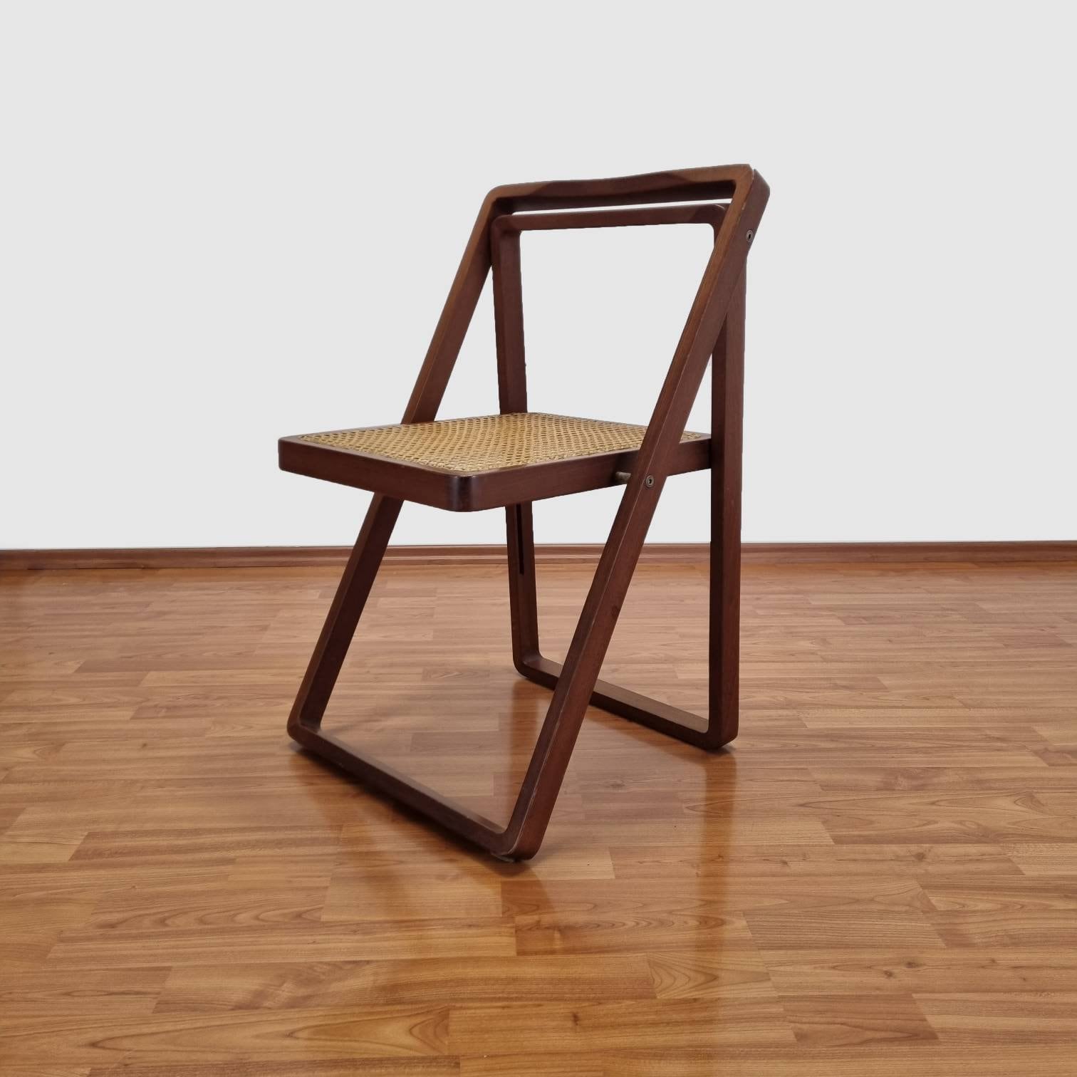Mid Century Modern Folding Chair, Chaise en bois et cane, Italie an...